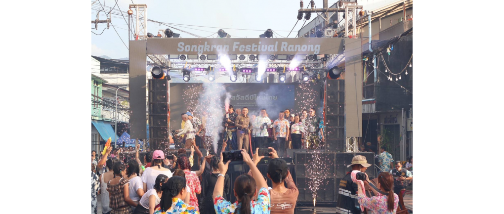 วันที่ 13 เมษายน 2569 เวลา 17.00 น. ณ เวทีกลางถนนเรืองราษฎร์ อำเภอเมืองระนอง จังหวัดระนอง มีพิธีเปิดโครงการมหกรรมสงกรานต์สราญใจ @ ระนอง ประจำปี 2569 “กิจกรรมการแสดง แสง สี เสียง มหกรรมดนตรี มหานครน้ำแร่” โดยมี นายราชัน มีน้อย ผู้ว่าราชการจังหวัดระนอง เป็นประธาน นายพินิจ ตันกุล นายกเทศมนตรีเมืองระนอง กล่าวต้อนรับ และนายสีหราช สรรพกุล นายกองค์การบริหารส่วนจังหวัดระนอง เป็นผู้กล่าวรายงาน พร้อมด้วย หัวหน้าส่วนราชการ องค์กรปกครองส่วนท้องถิ่น ภาคเอกชน แขกผู้มีเกียรติ และประชาชน เข้าร่วม